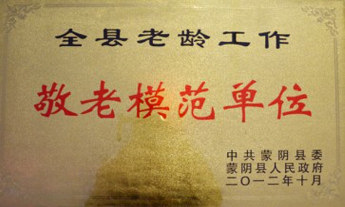 为蒙阴县“孝亲敬老”之星,东蒙集团获得全县老龄工作“敬老模范单位”荣誉称